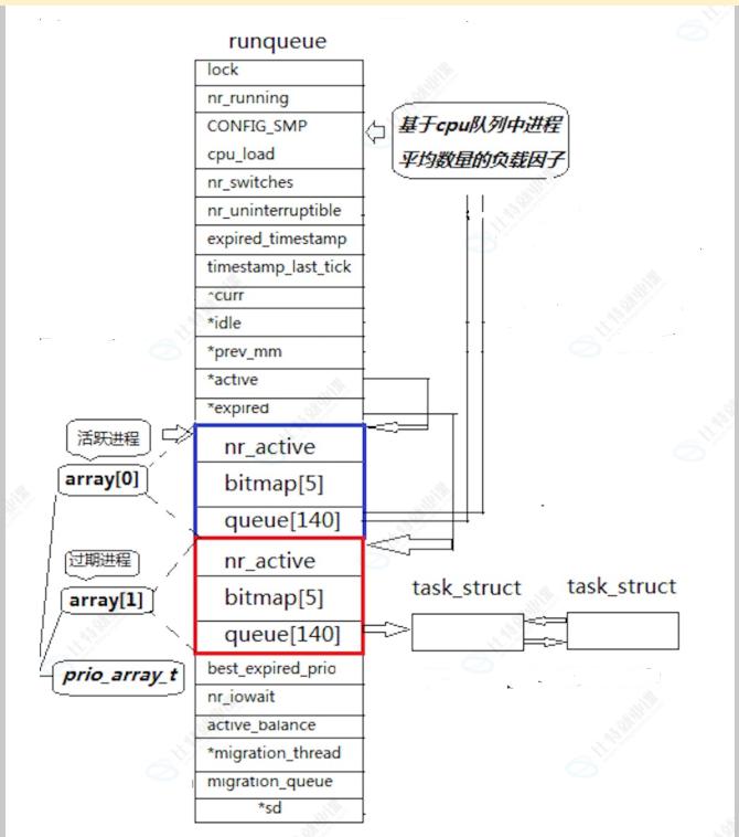 也就是红色框部分,过期队列和活动队列结构⼀模⼀样