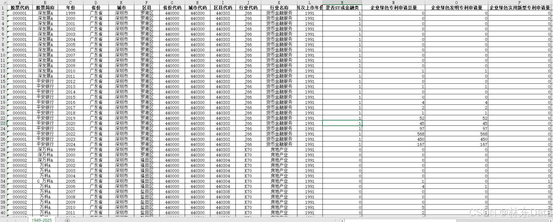 在"双碳"目标引领与绿色发展战略深化的背景下,企业绿色创新已成为高质量发展的核心指标。2025年11月更新的A股上市公司绿色专利数据(1999-2024),通过科学分类匹配构建了覆盖25年、包含69939条记录的完整数据集,为学术研究与实务决策提供了标准化的绿色创新量化工具。