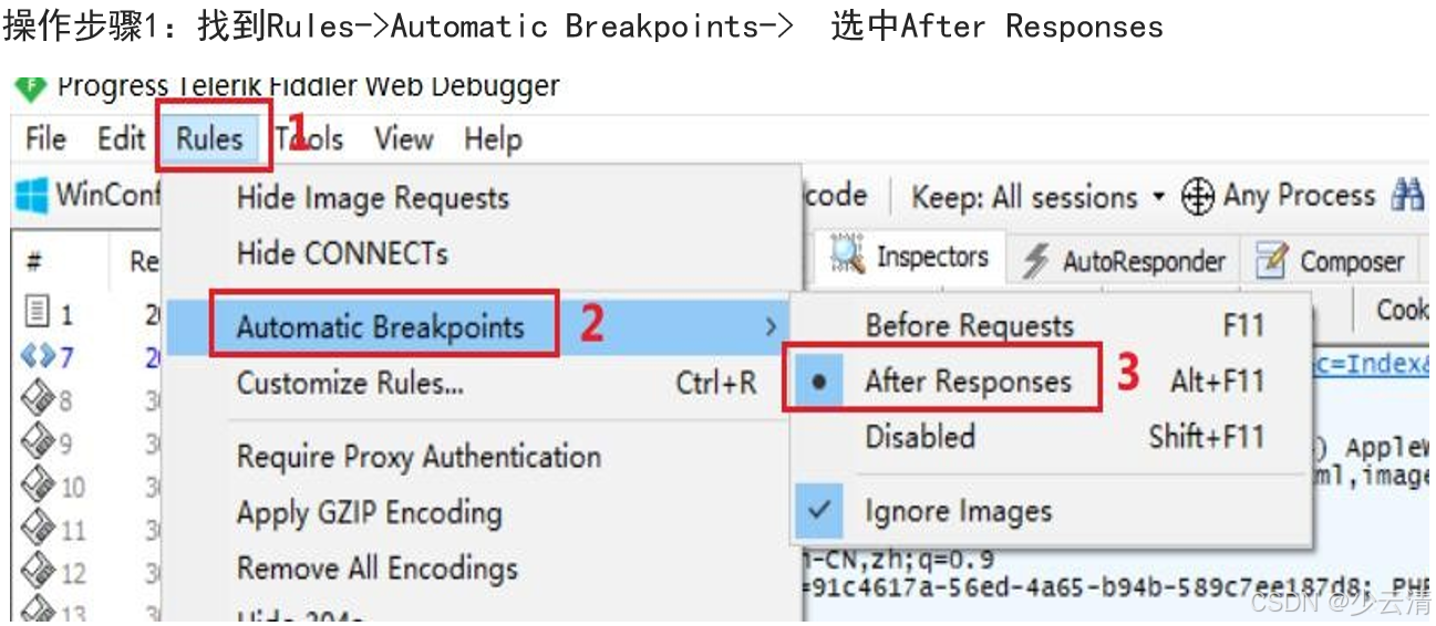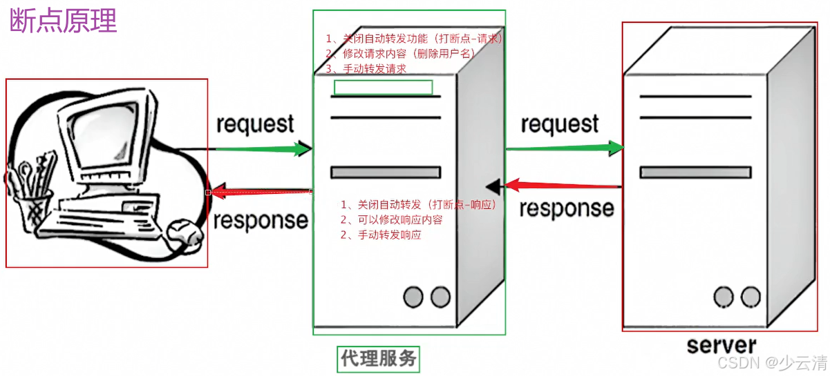 1、使用抓包工具开启代理服务(转发请求与响应)