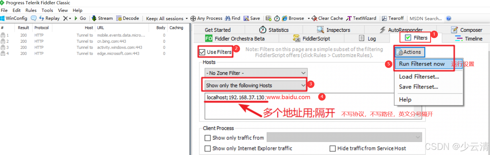 ------抓包时,有很多其他请求,干扰太大,可以使用过滤只看被测项目相关信息。