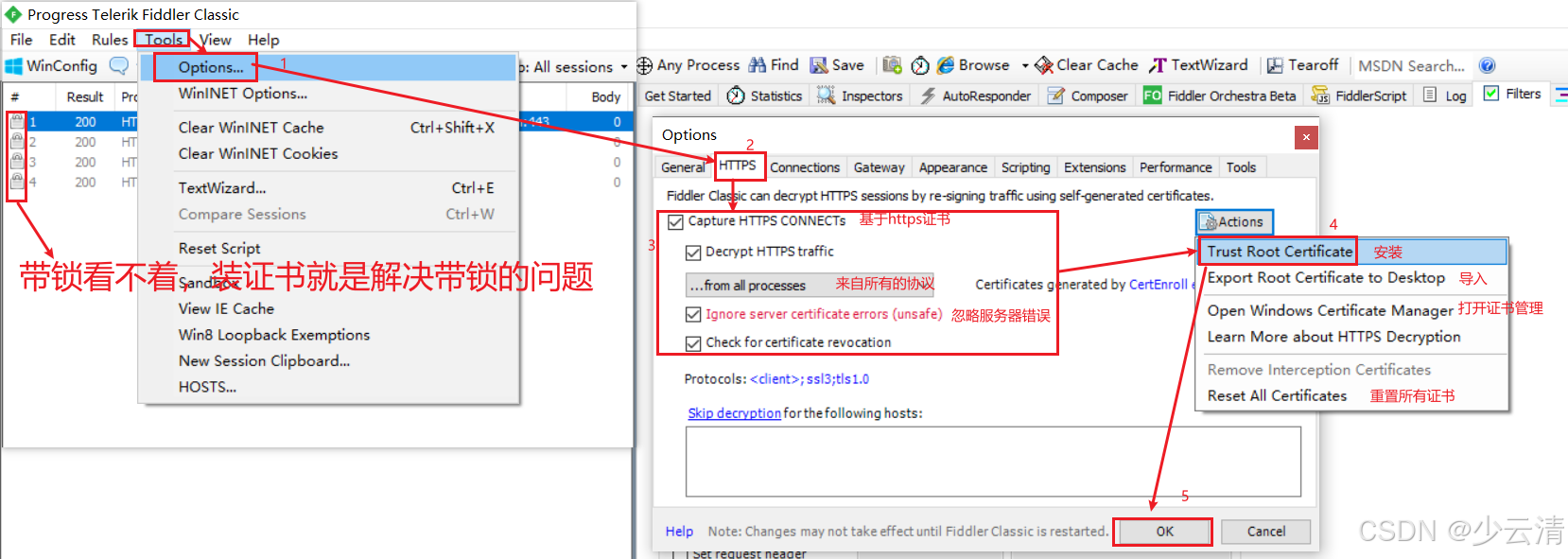 ------抓取https协议的包。(带锁看不着,装证书就是解决带锁的问题)