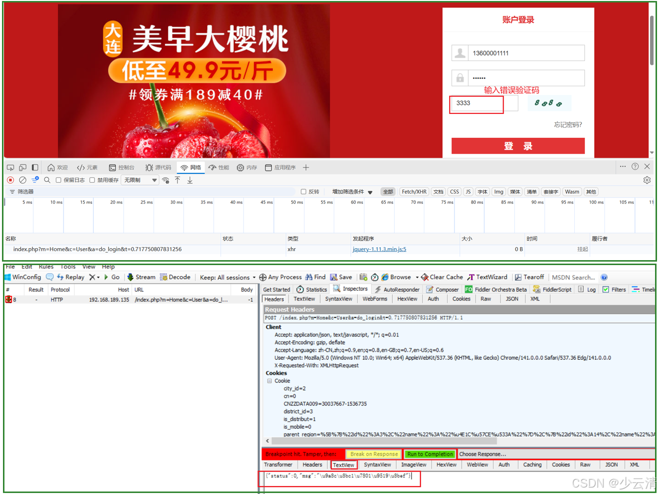 ③ 如果有请求也有响应,需要查看响应信息, 如果返回报错了,则需要具体分析报错内容。