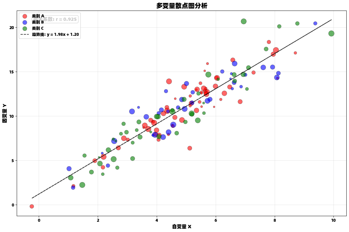 plt.title('多变量散点图分析', fontsize=16, fontweight='bold')