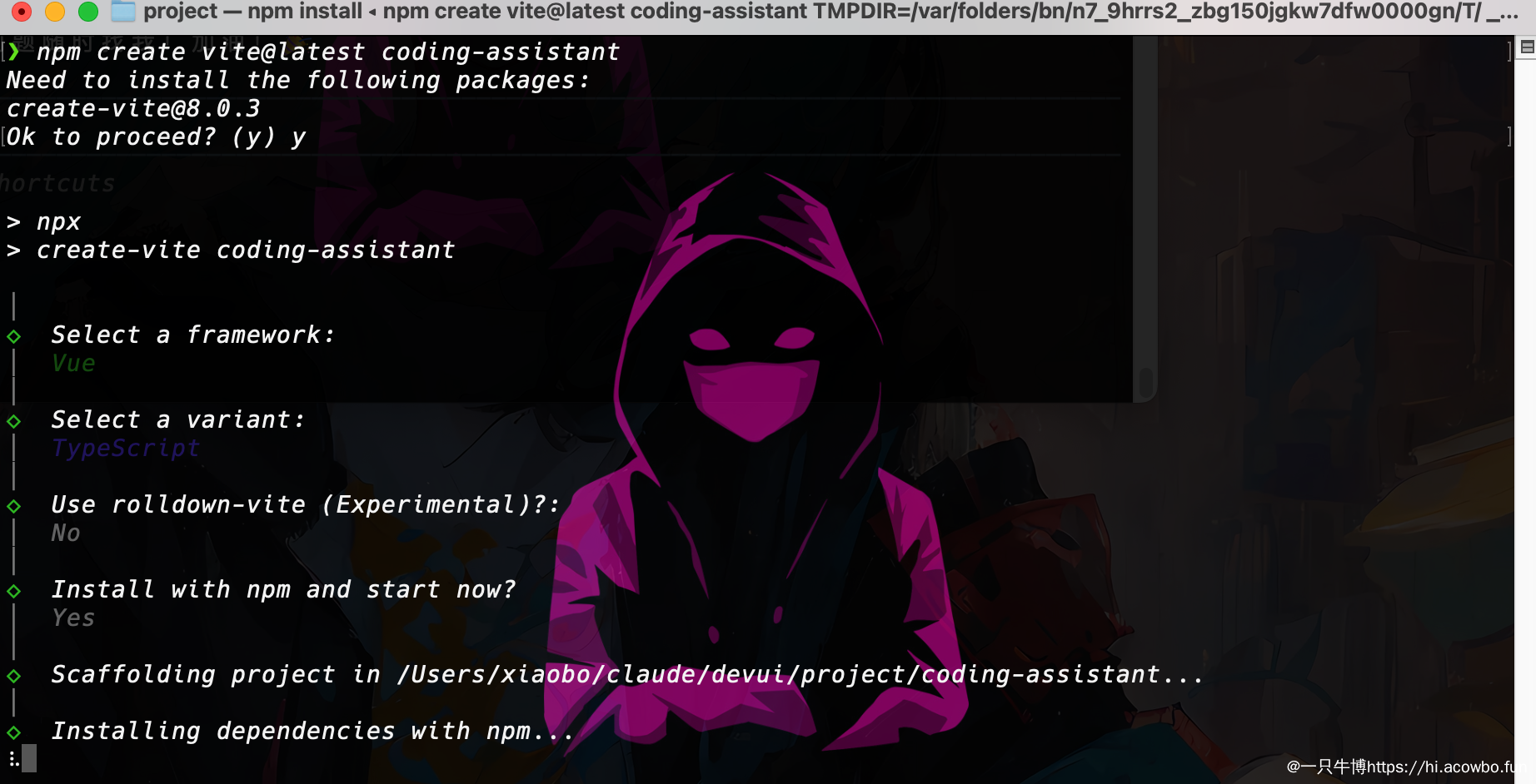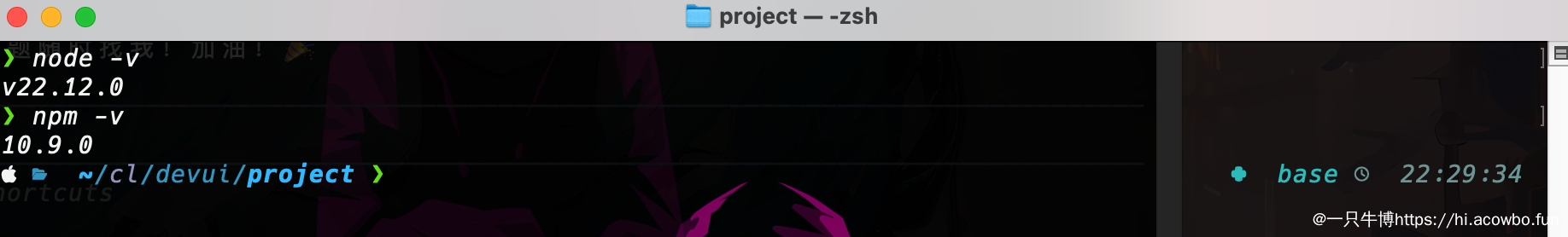 Node.js 版本需要在 18 以上。从截图可以看到使用的是 v22.12.0,npm 版本是 10.9.0,完全满足要求。环境检查是第一步,避免后续因为版本问题出现兼容性 bug。