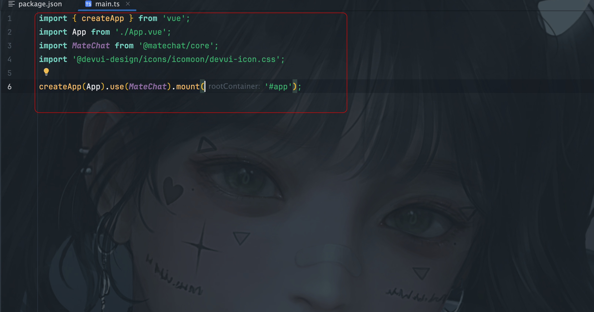 配置的关键点有两个:全局注册 MateChat(use(MateChat))和引入图标样式。这个截图在教学中可以直接给学员看,比文字说明更清晰。注意图标样式路径必须是 @devui-design/icons/icomoon/devui-icon.css,这是新手容易写错的地方。