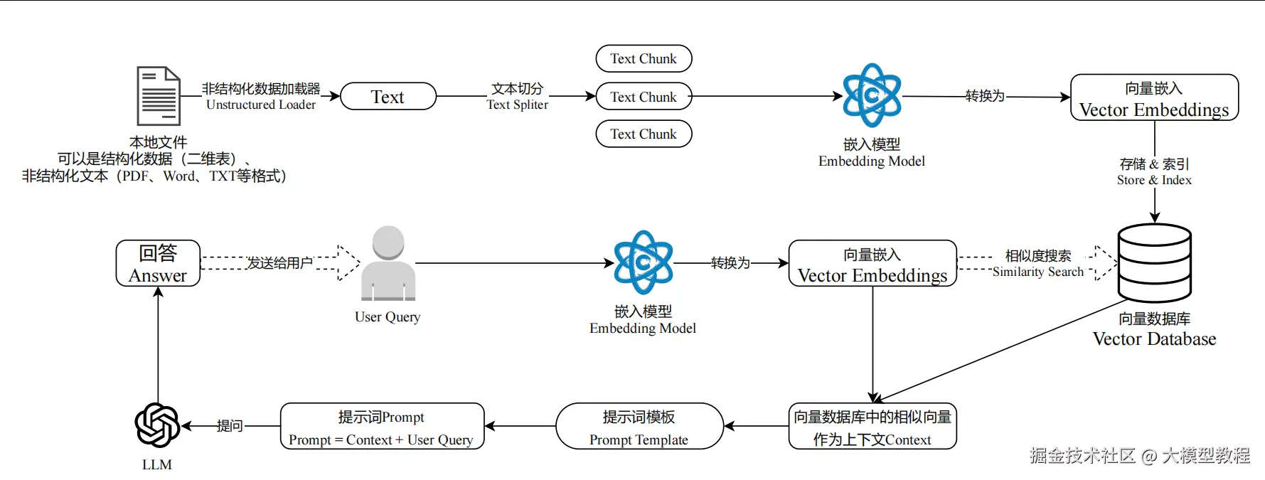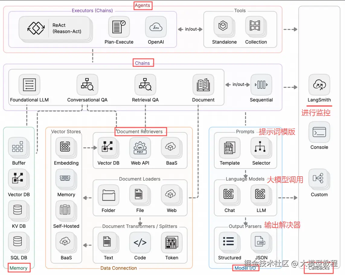 在这个基础上,其它组件要么是它们的辅助(比如:向量数据库的分块和嵌入),要么只是完成常规应用程序的任务