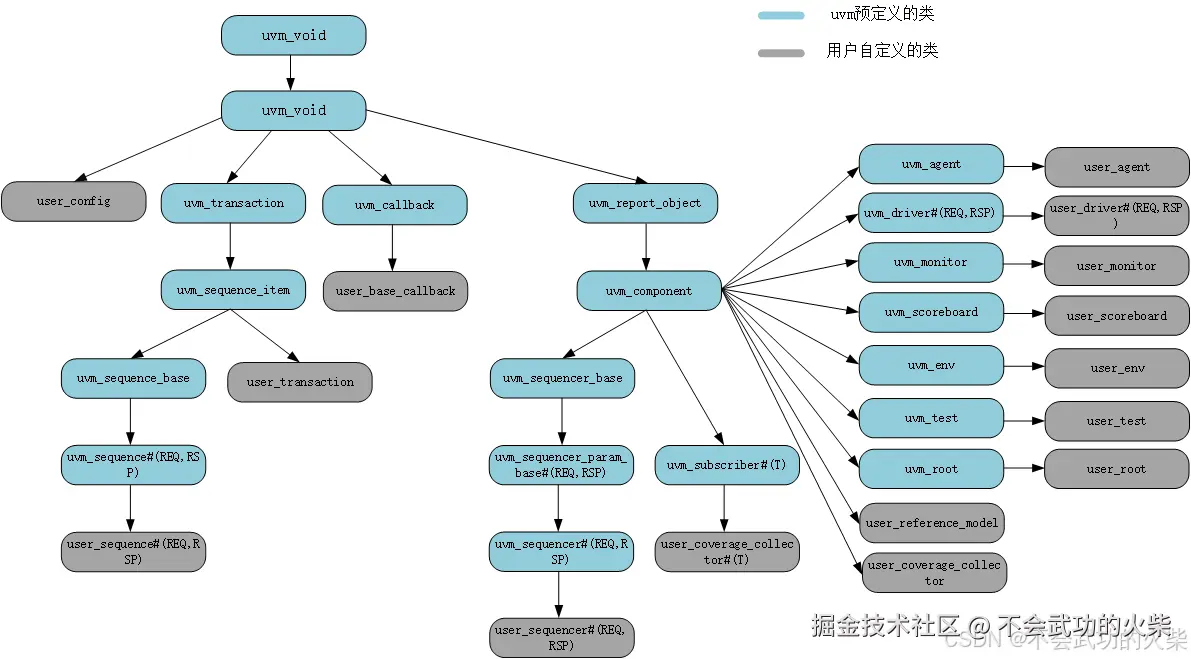 UVM(Universal Verification Methodology)采用基于类的面向对象编程,通过清晰的继承关系构建了一个层次化的验证框架。理解这些继承关系对于掌握UVM至关重要,它帮助我们: