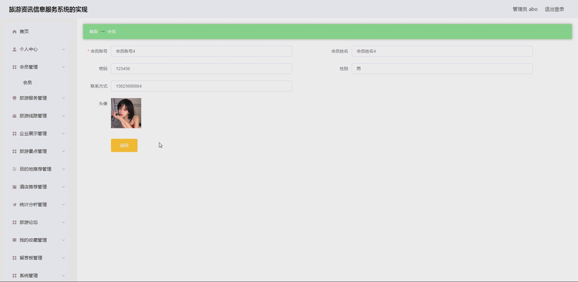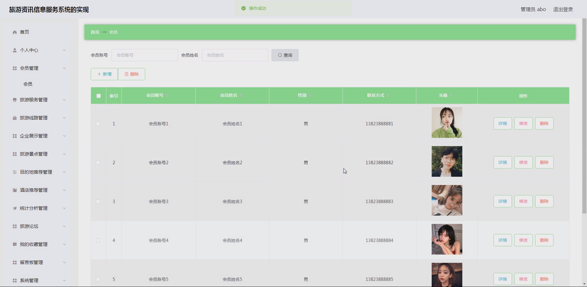 对游客而言,该系统为其提供了一个一站式的旅游资讯获取平台,游客可通过系统便捷查询旅游景点、线路、酒店等信息,获取个性化的目的地推荐,同时通过会员服务享受专属权益,有效解决了旅游信息分散、查询不便的问题,提升了游客的出行规划效率和旅游体验。
