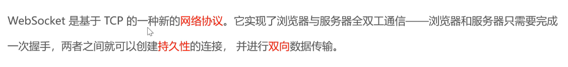 即浏览器可以向服务器传输数据,服务器也可以主动向浏览器传输数据。