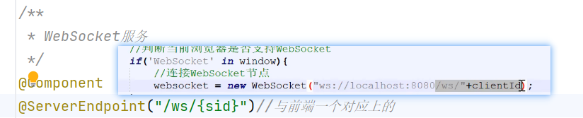 @ServerEndpoint("/ws/{sid}")//与前端一个对应上的