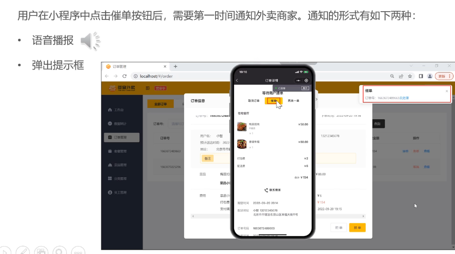 是由客户催发的,用户点击催单按钮之后它会发起一次请求来请求服务端,所以需要设计一个新接口。