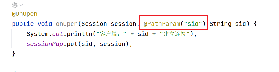 public void onOpen(Session session, @PathParam("sid") String sid) {