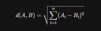 欧几里得距离测量的是两点在空间中的直线距离。其公式为: