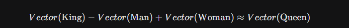 现代嵌入技术(如Word2Vec、BERT及OpenAI的text-embedding-3)生成的则是稠密向量。这些向量通常具有几百到几千个维度(例如384维、768维、1536维甚至3072维)。在这些模型中,语义相似的实体在向量空间中距离更近。一个经典的例子是向量算术运算能够捕捉类比关系:
