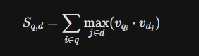 交互:在搜索时,它计算查询中的每个Token向量与文档中每个Token向量的相似度(MaxSim操作),然后求和。