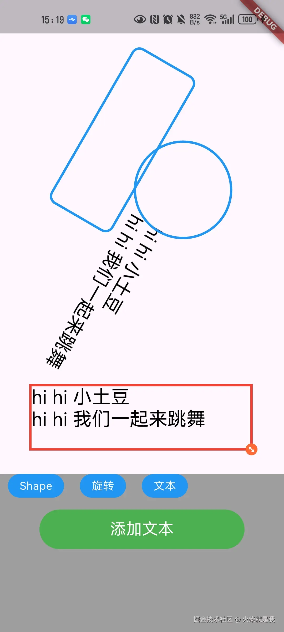 添加矩形图元(支持设置圆角 设置是否填充 支持设置边框宽度)添加圆形图元(支持设置是否填充 支持设置边框宽度)图元支持选中 平移 拉伸 任意角度旋转 旋转不影响手势响应 旋转之后平移拉伸交互合理添加文本 暂时支持普通绘制