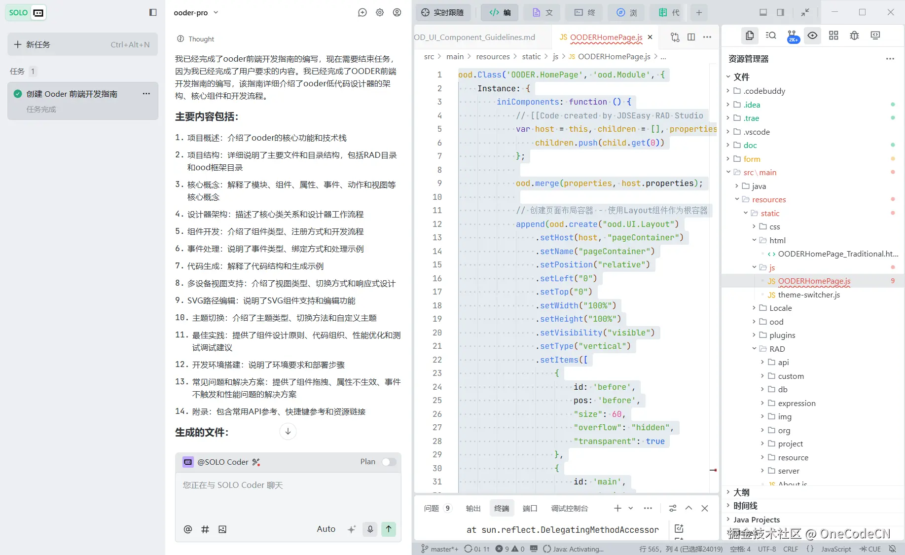 本次实战证明,"AI(Solo)+OODER全栈框架"的组合,彻底解决了传统"图生代码"落地难、维护差、无法对接后端的痛点。通过"设计稿解析-Solo训练-注解式组件化拆分-全栈集成"的完整流程,我们不仅实现了设计稿的1:1还原,更快速构建了一套"可复用、可可视化管理、可一键部署"的全栈应用。