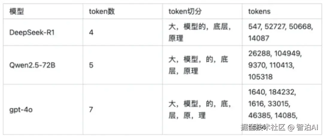 比如: 同一句话(大模型的底层原理),Tokenizer不同的大模型会被切分成不同的token序列