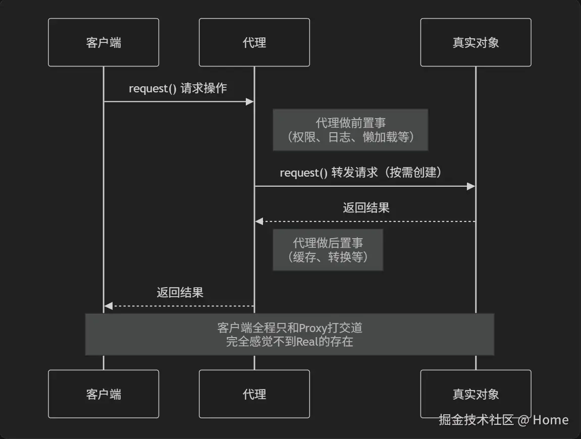 - 代理模式的本质是:控制对真实对象的访问,并为其添加额外功能