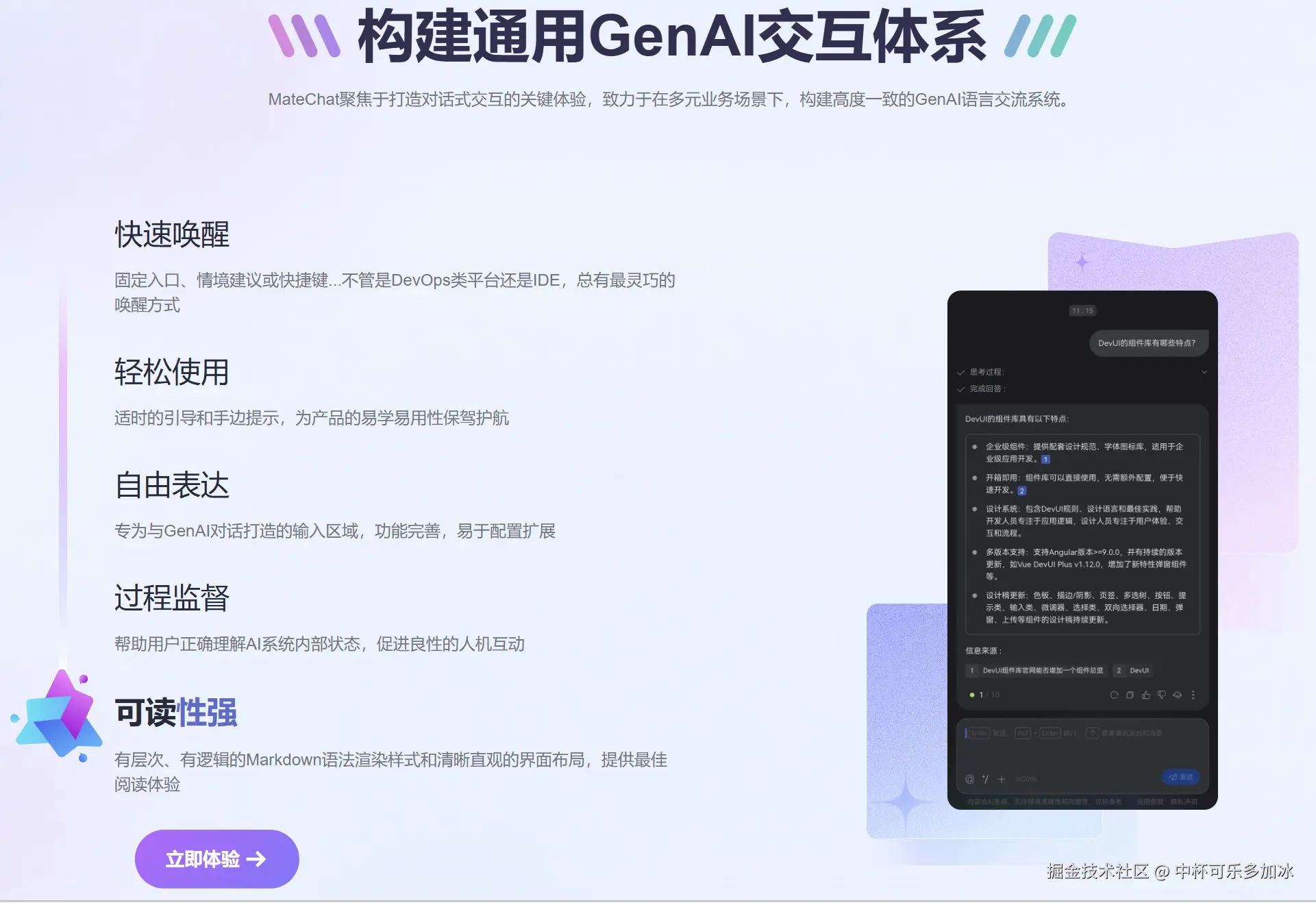 在探索这一技术的过程中,我们也发现DevUI设计系统为构建高质量的用户界面提供了强大的支持。DevUI不仅提供了丰富的组件和灵活的定制能力,还注重设计的一致性和用户体验,能够帮助开发者更好地实现金融领域的复杂交互需求。如果你对MateChat框架的深度应用感兴趣,或者想了解如何通过DevUI打造更优质的用户交互体验,深入了解DevUI的丰富组件和设计理念,不妨关注MateChat官网和DevUI官网,获取更多实用信息和技术支持,共同推动金融科技的创新与发展。