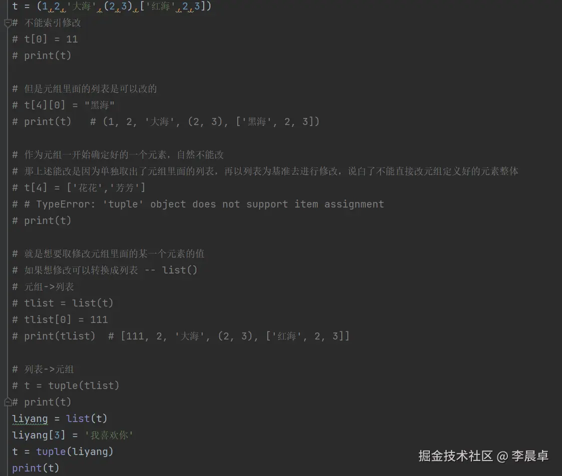 我们都知道,元组中的元素是不能以索引修改的,但元组里的列表中的元素是可以用索引修改的,为此,我们将元组转换为列表以后再修改就可以了,具体流程如下: