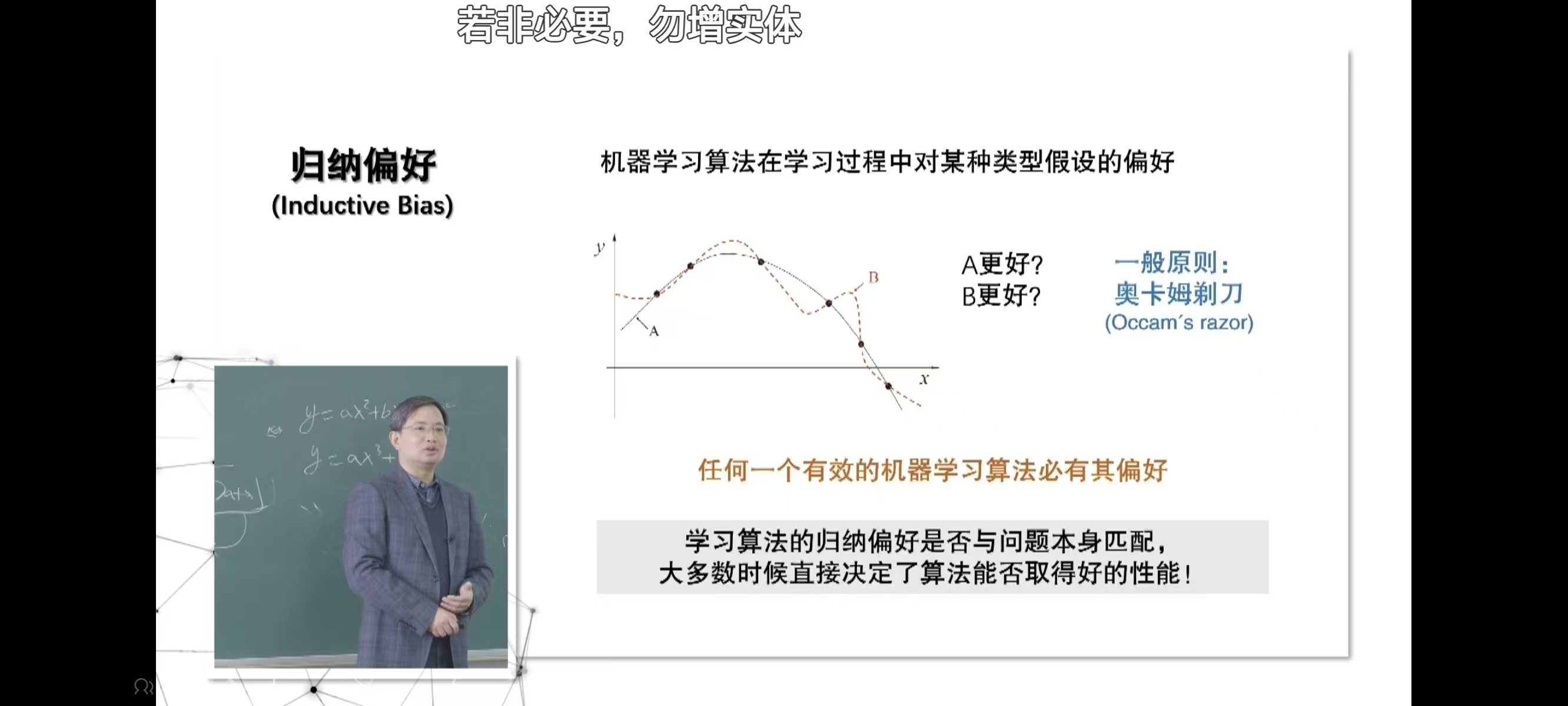 学习算法的归纳偏好是否与问题本身匹配,大多数时候直接决定了算法能否取得好的性能!