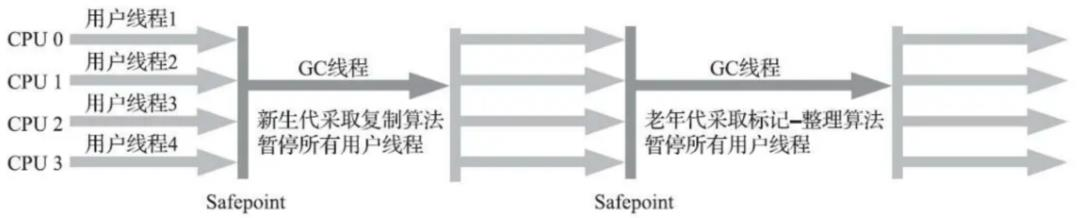 - 特点:✅ 优点:实现简单、无线程切换开销,内存占用小;❌ 缺点:单线程效率低,STW 时间长(堆内存越大,停顿越久)。