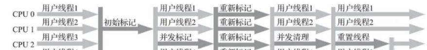 - 重新标记(CMS remark):重新标记阶段则是为了修正并发标记期间,因为用户程序继续运作而导致 标记产生变动的那一部分对象的标记记录,这个阶段的停顿时间通常会比初始标记阶段稍长一些,但 也远比并发标记阶段的时间短。