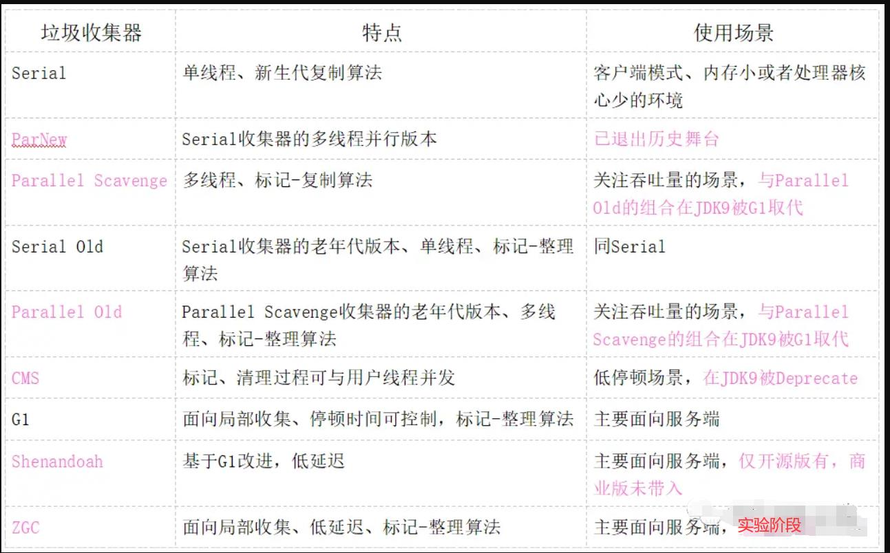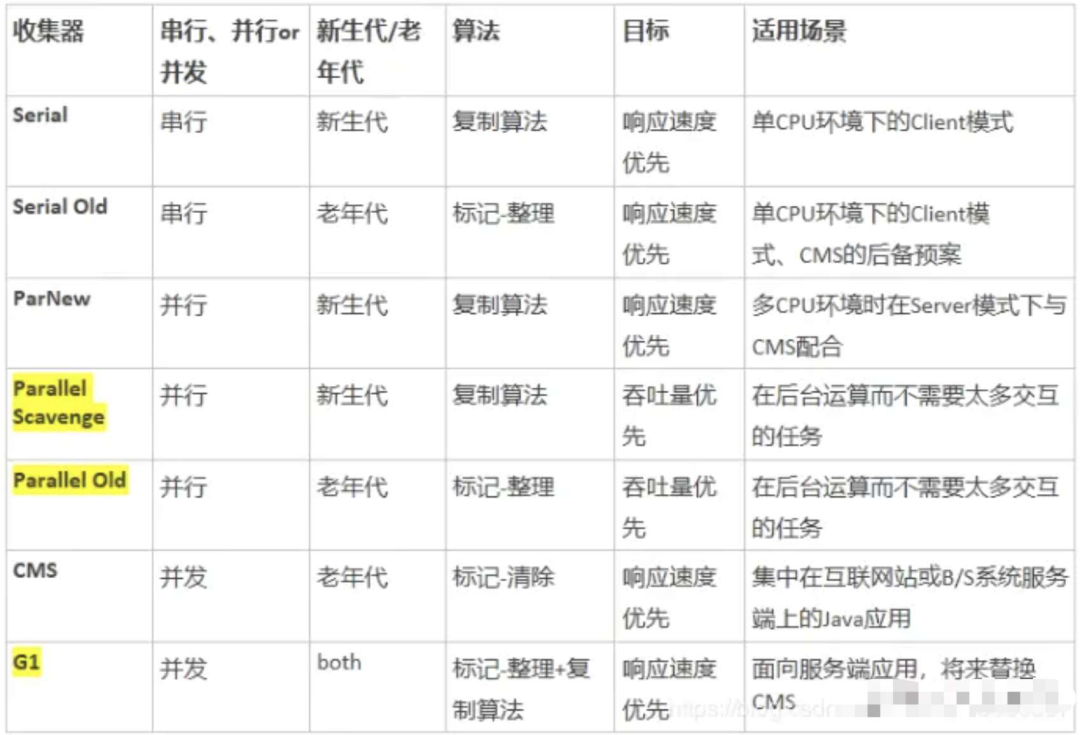 HotSpot VM 中的垃圾回收器,以及适用场景: