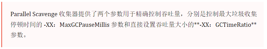 Parallel Scavenge 收集器的目标则是达到一个可控制的吞吐量(Throughput)。所谓吞吐量 就是处理器用于运行用户代码的时间与处理器总消耗时间的比值。如果虚拟机完成某个任务,用 户代码加上垃圾收集总共耗费了 100 分钟,其中垃圾收集花掉 1 分钟,那吞吐量就是 99%。