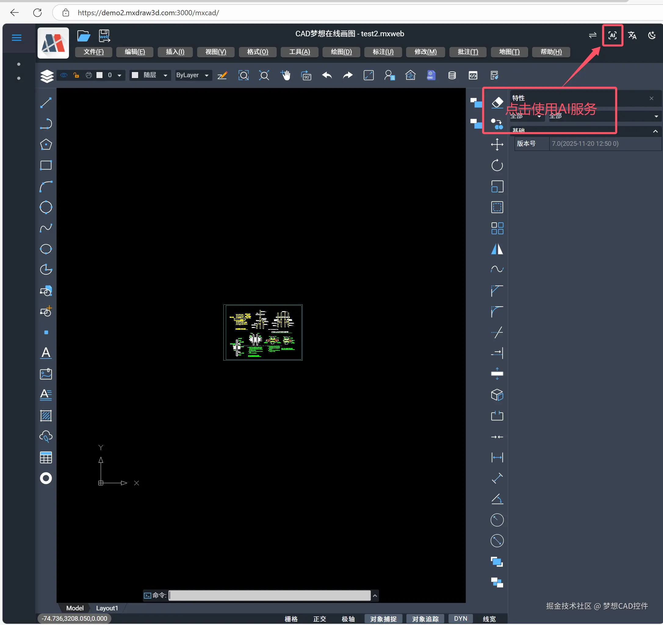 首先打开demo2.mxdraw3d.com:3000/mxcad/, 如下图: