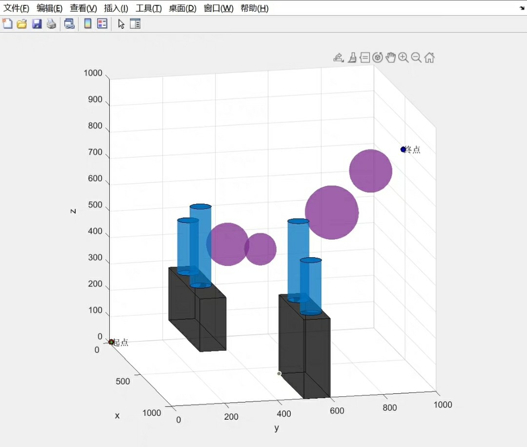 绘制结果的时候,viscircles函数把障碍物画成了圆,plot3函数则把路径、起点和终点都画出来了,这样整个搜索过程就一目了然啦👏!