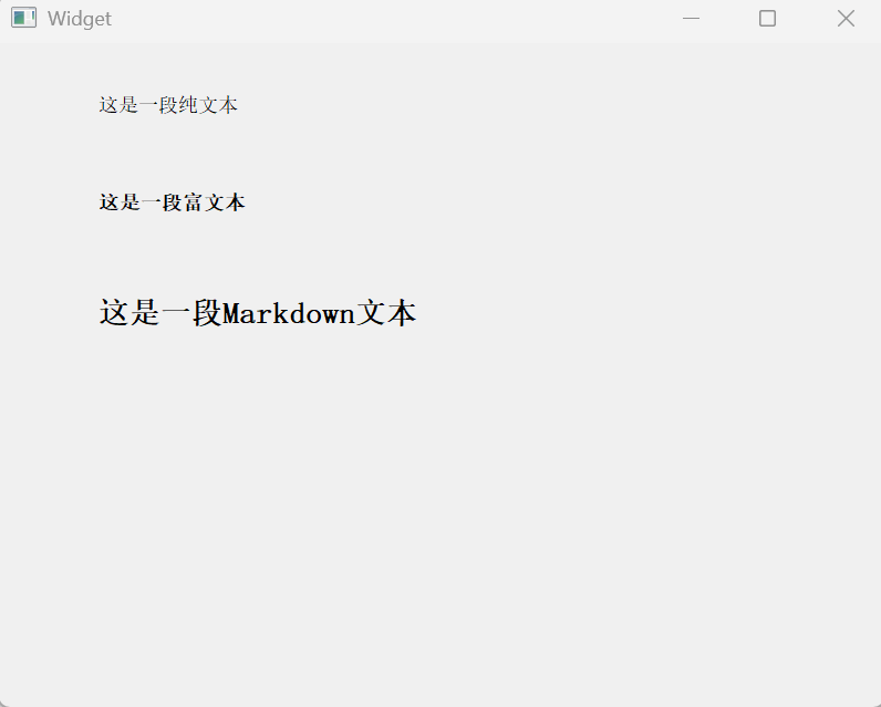 | textFormat | ⽂本的格式. Qt::PlainText 纯⽂本 Qt::RichText 富⽂本(⽀持 html 标签) Qt::MarkdownText markdown 格式 Qt::AutoText 根据⽂本内容⾃动决定⽂本格式. |