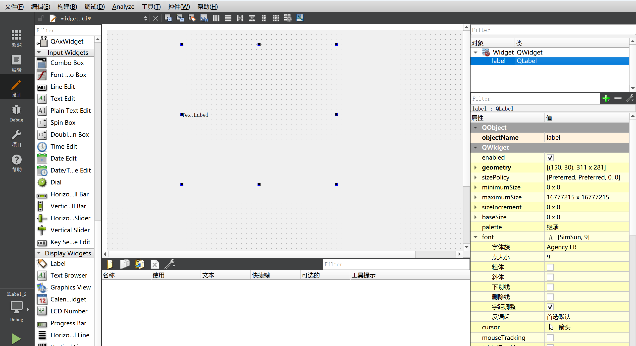 - 在界⾯上创建⼀个 QLabel, objectName 为 label