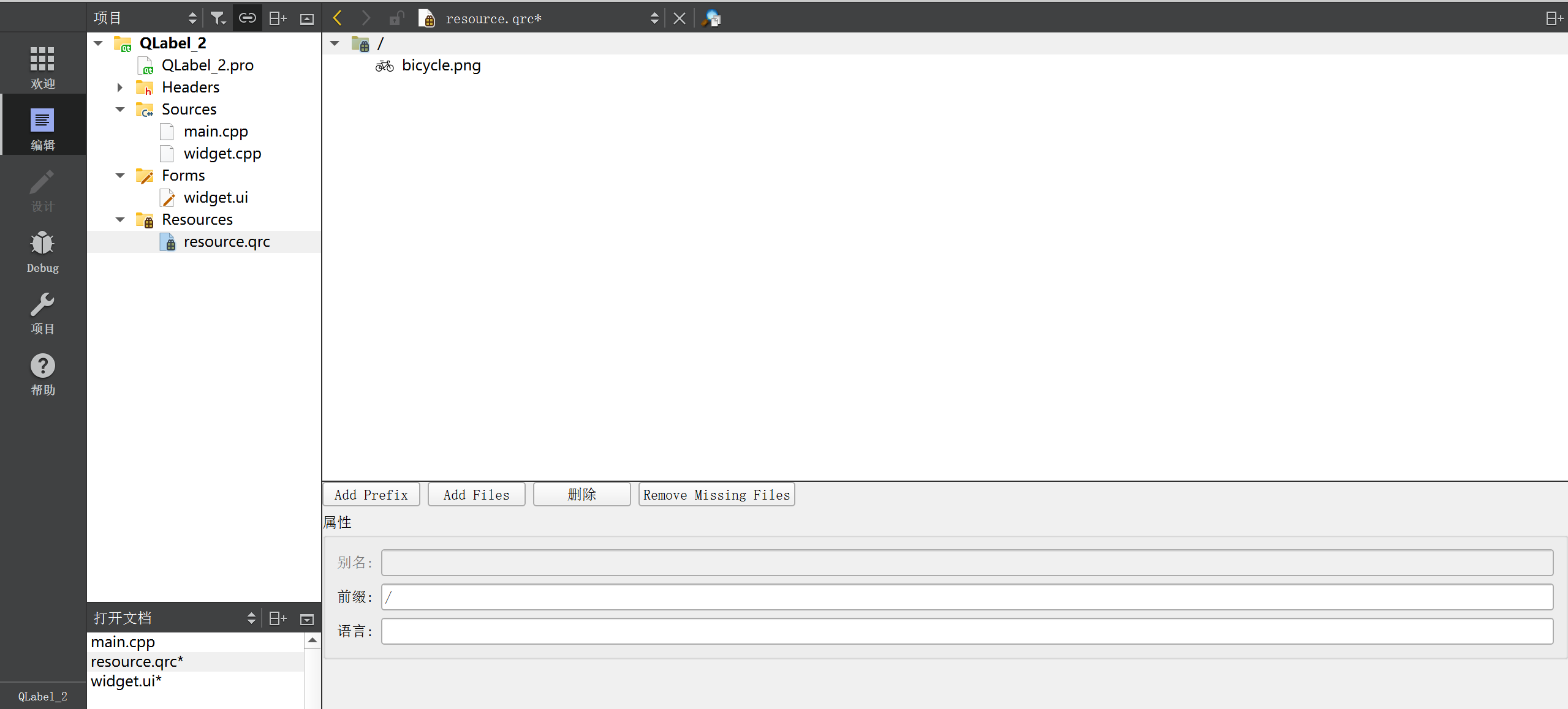 - 创建 resource.qrc ⽂件, 并把图⽚导⼊到 qrc 中.