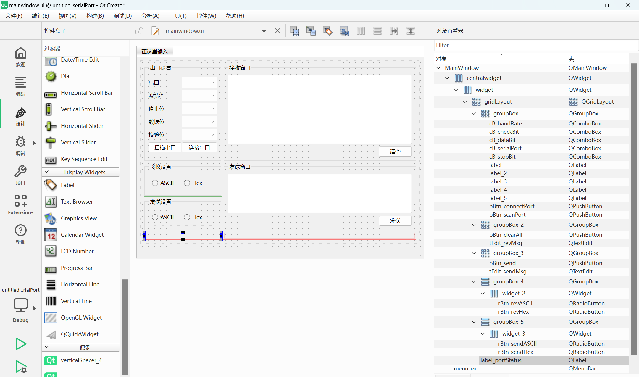 ui->pBtn_connectPort->setText(tr("关闭串口"));
