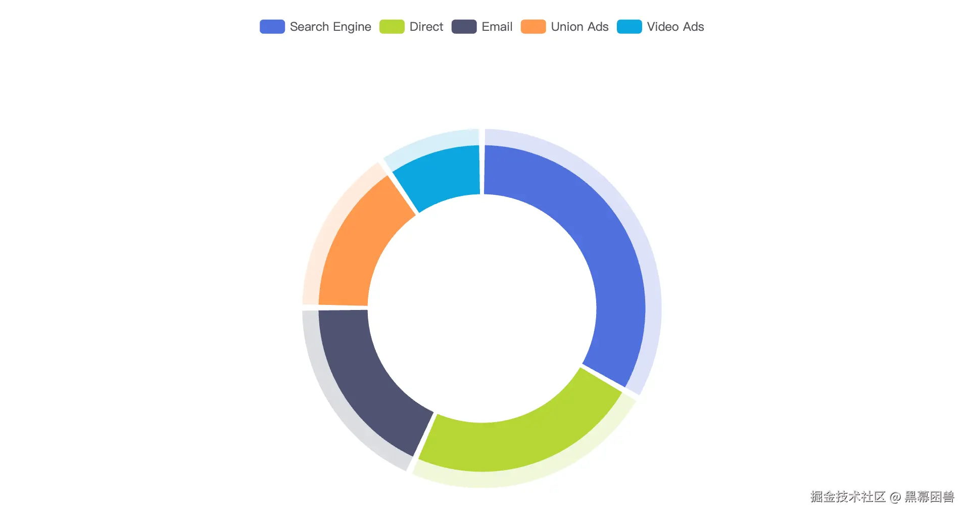 以上是UI的效果图,大致实现思路可以参考echarts官网的实例 (饼图扇区间隙)实现类似的效果。