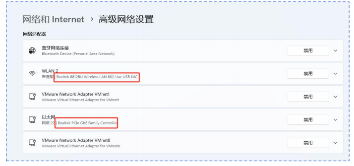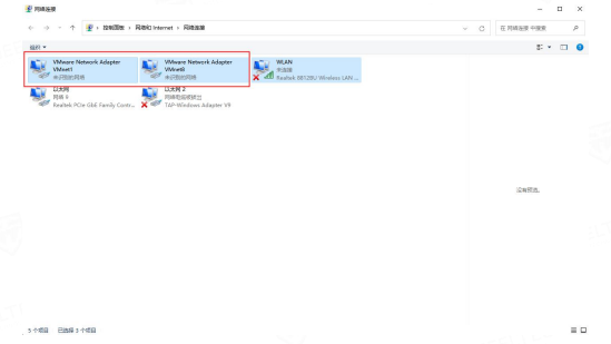 在Windows中可以看到VMnet1和VMnet8两个虚拟网卡,说明不仅可以通过虚拟机的虚拟网络编辑器来修改,也可以直接在物理机上通过更改网络适配器选项来修改。