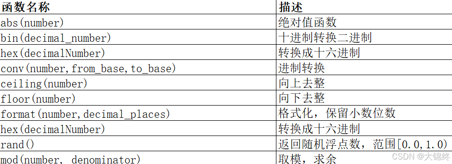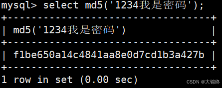 - md5(str)对一个字符串进行md5摘要,摘要后得到一个32位字符串,一般用于生成密码,表中查询得到的数据是经过哈希映射之后的加密数据,固定32位不管原字符串长度等于多少
