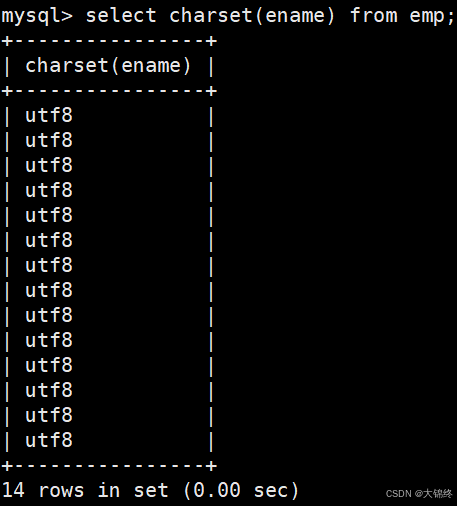 - 获取emp表的ename列的字符集