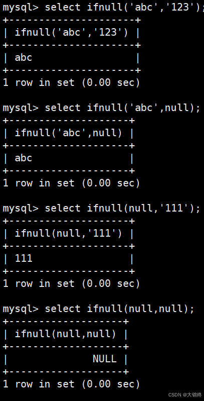 MD5 哈希易被暴力破解,敏感场景应使用 BCRYPT、SHA256 等更安全的算法;MD5 的核心价值是快速生成数据的轻量摘要,用于非敏感场景的完整性校验、唯一性标识,避开 "密码加密、高安全校验" 等场景即可合理发挥其优势。 - ifnull(val1, val2) 如果val1为null,返回val2,否则返回val1的值