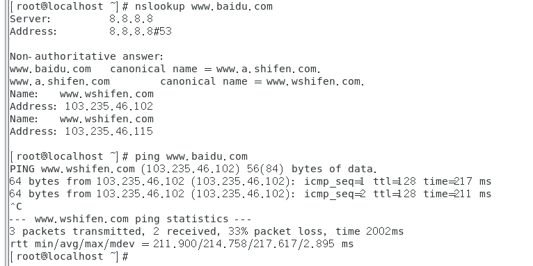 ping www.baidu.com # ping外网(通则DNS配置正常)