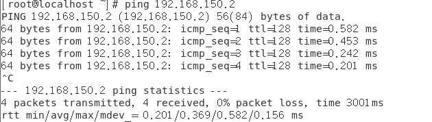 ping 192.168.150.1 # ping网关(通则网络正常)