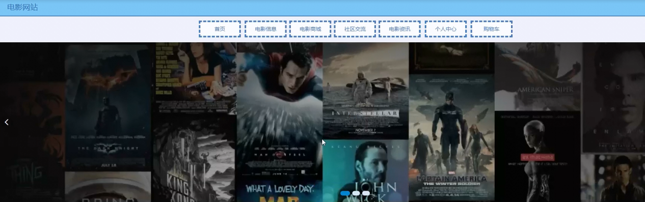 电影网站;在网站首页可以查看首页,电影信息,电影商城,社区交流,电影资讯,个人中心,购物车等内容进行详细操作,如图5-2所示。