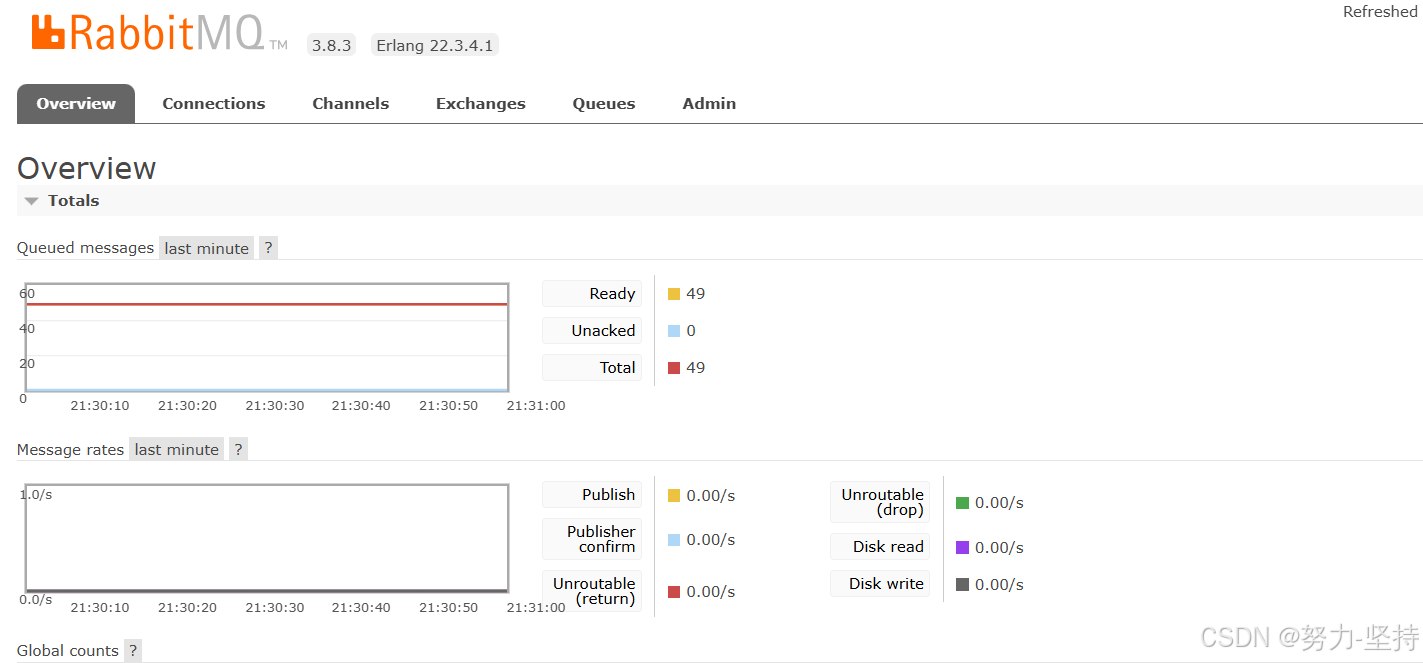 消息队列RabbitMQ:管理界面,登陆后查看消息队列