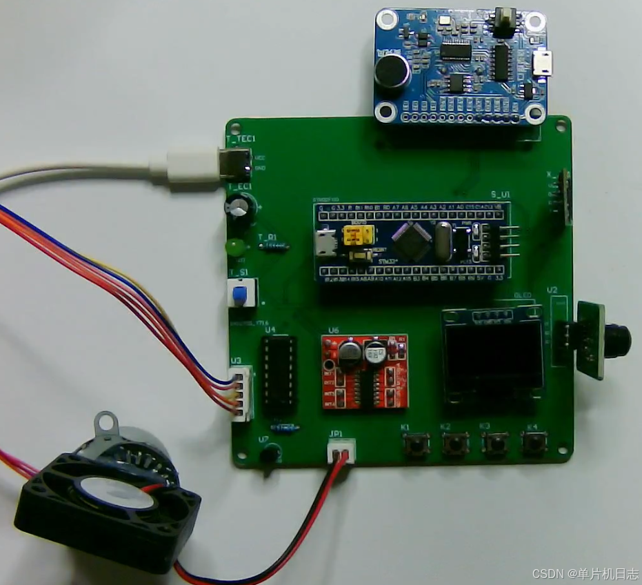 4、通过步进电机带动风扇,可模拟自动摇头,按键可以控制启停