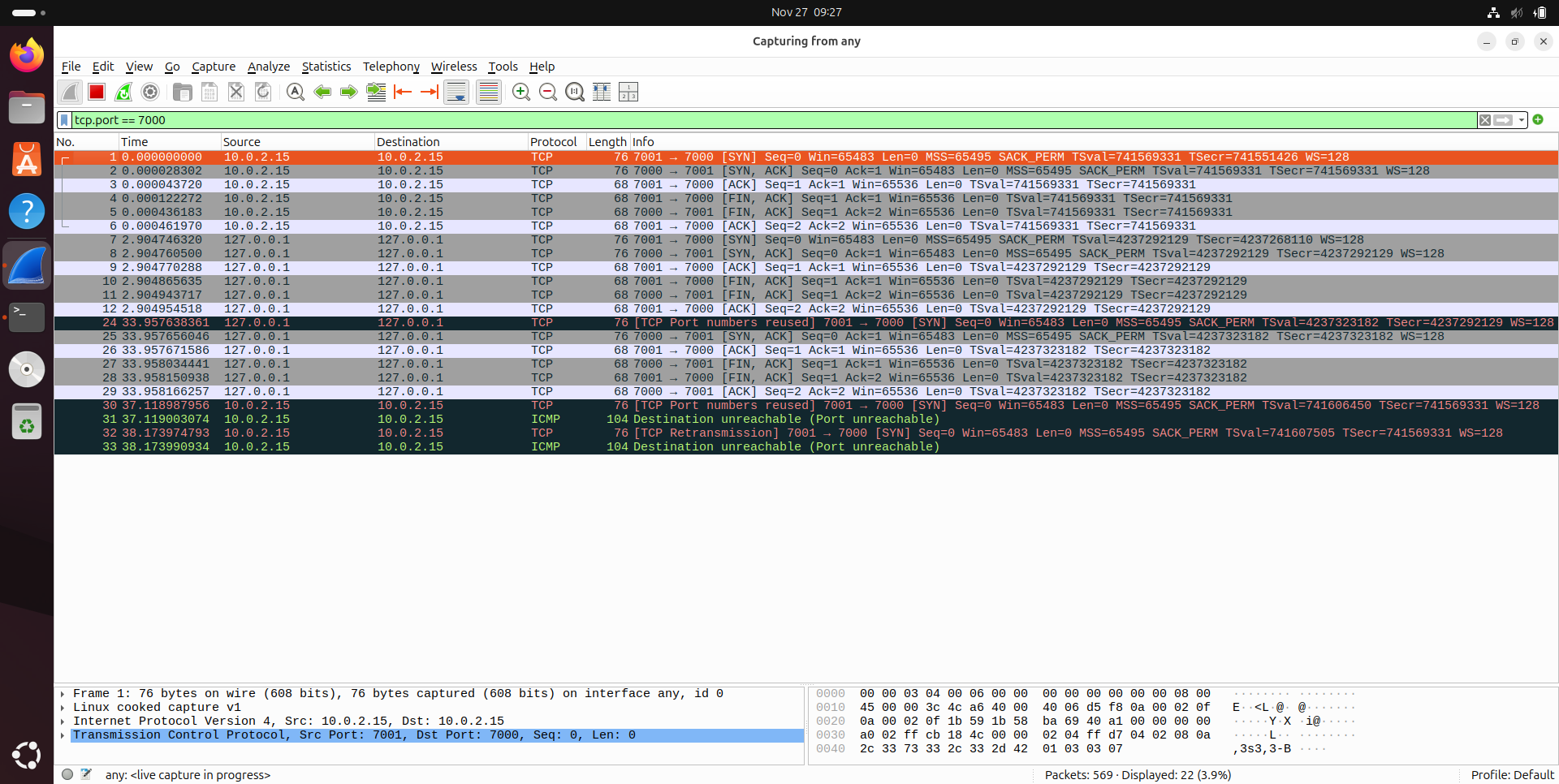 root@TTT:~# cat s.c #include <stdio.h> #include <stdlib.h> #include <sys/socket.h> #include <arpa/inet.h> #include <sys/socket.h> #include <netinet/in.h> #include <unistd.h> #include <assert.h> int main(int argc, char *argv[]) { int fd = -1; int ret = -1; int opt = 1; struct sockaddr_in addr; struct sockaddr_in client; socklen_t len = 0; pid_t pid = -1; addr.sin_family = AF_INET; addr.sin_port = htons(7000); addr.sin_addr.s_addr = inet_addr("0.0.0.0"); client.sin_family = AF_INET; client.sin_port = htons(7001); client.sin_addr.s_addr = inet_addr(argv[1]); pid = fork(); if (pid == -1) { perror("fork:"); } else if (pid > 0) { fd = socket(AF_INET, SOCK_STREAM, 0); setsockopt(fd, SOL_SOCKET, SO_REUSEADDR, &opt, sizeof(opt)); printf("Server# set server IP %s Port %d\n", inet_ntoa(addr.sin_addr), ntohs(addr.sin_port)); ret = bind(fd, (struct sockaddr *)&addr, sizeof(addr)); assert(ret == 0); ret = listen(fd, 6); assert(ret == 0); printf("Server# start accept\n"); len = sizeof(client); ret = accept(fd, (struct sockaddr *)&client, &len); printf("Server# accept IP %s Port %d connected\n", inet_ntoa(client.sin_addr), ntohs(client.sin_port)); close(ret); close(fd); } else { usleep(20000); fd = socket(AF_INET, SOCK_STREAM, 0); setsockopt(fd, SOL_SOCKET, SO_REUSEADDR, &opt, sizeof(opt)); assert(fd != -1); printf("Client# set client IP %s Port %d\n", inet_ntoa(client.sin_addr), ntohs(client.sin_port)); ret = bind(fd, (struct sockaddr *)&client, sizeof(client)); assert(ret == 0); printf("Client# connect to IP %s Port %d\n", inet_ntoa(addr.sin_addr), ntohs(addr.sin_port)); ret = connect(fd, (struct sockaddr *)&addr, sizeof(addr)); close(fd); } usleep(2000); return 0; }