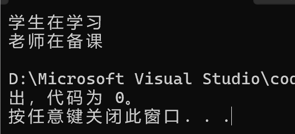 上面演示了一个继承Person基类的派生类Student和Teacher,分别调用了同一个虚函数study,展现了不同的结果。