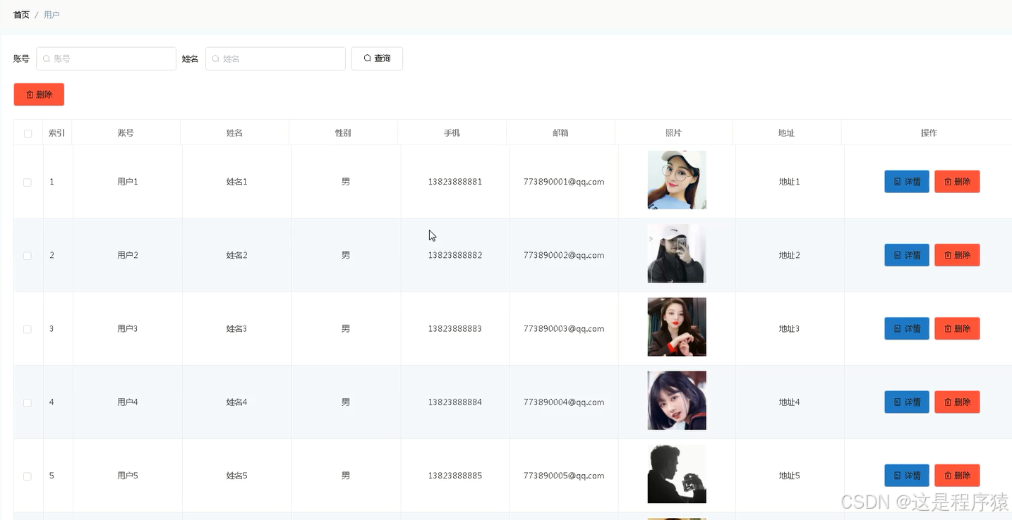 管理员可查看和删除用户信息,用户管理界面展示如图5-11所示。