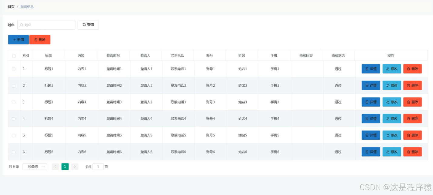管理员可增删改查邀请信息,邀请信息管理界面展示如图5-12所示。